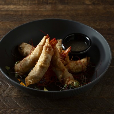 Delicate rice paper wraps filled with fresh vegetables, served with a sweet sesame soy sauce.