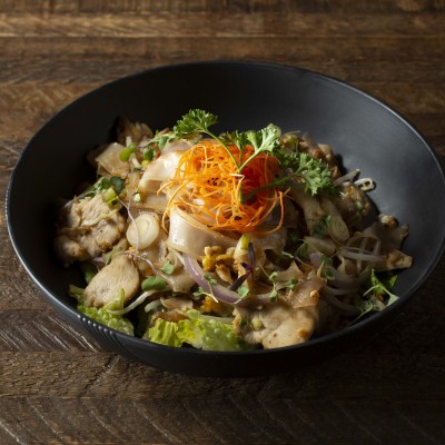 Experience the classic harmony of rice noodles, eggs, bean sprouts, and onions, elevated with savory Thai flavors.